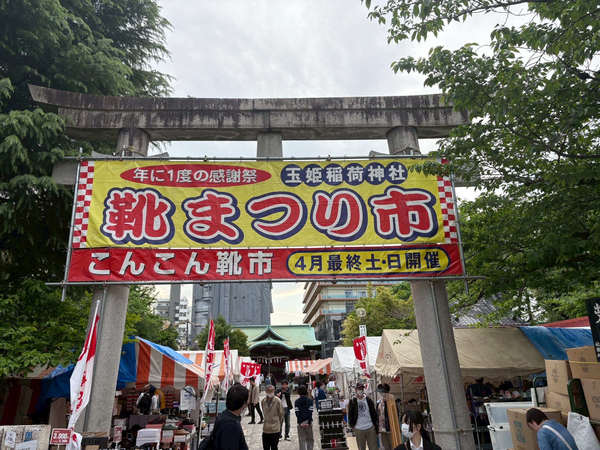 「こんこん靴市」は、玉姫稲荷神社周辺の靴関連業者を中心に、
